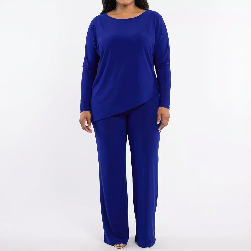 The Nova Flow Set is designed for effortless style and all-day comfort. Featuring a relaxed long-sleeve top with a clean neckline and matching wide-leg pants, this set drapes beautifully and moves with you. The soft, stretchy fabric creates a smooth silhouette while offering maximum comfort—perfect for both lounging and everyday wear.