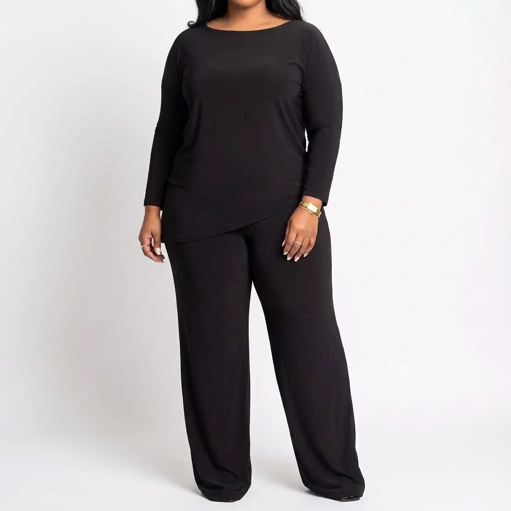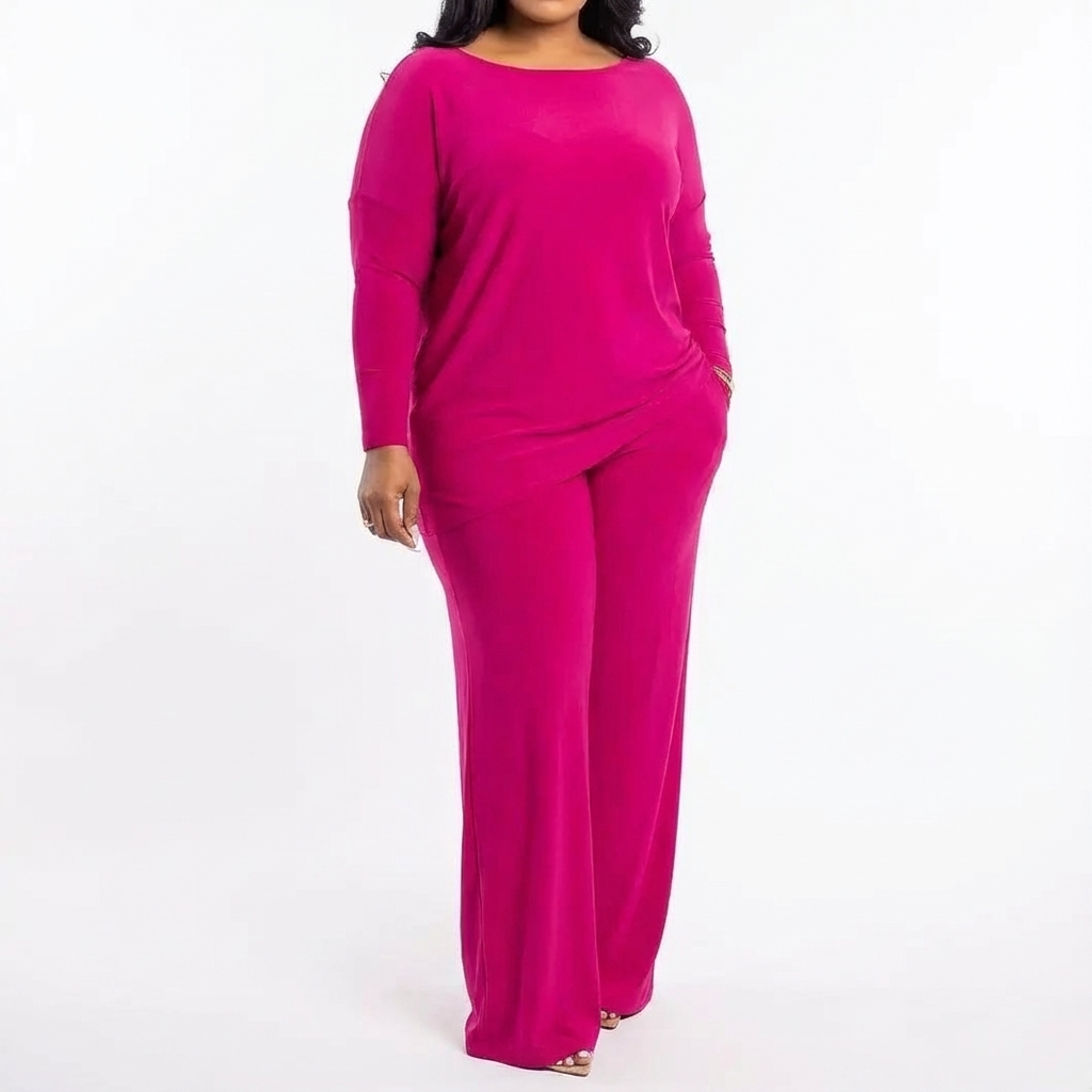 ✔ Two-piece set: long-sleeve top and wide-leg pants